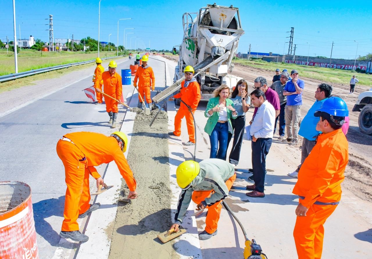 La intendente, Ing. Norma Fuentes, supervisó los trabajos de mejoras en el acceso al barrio Villa del Carmen por la avenida de Circunvalación Raúl Alfonsín, con el objetivo de ordenar el tránsito de vehículos en ese sector.